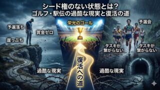 プロゴルファー シード権のない状態とは?ゴルフ・駅伝の過酷な現実と復活の道 「シード権のない状態」とは一体何?ゴルフ界のメルセデスランキング50位やQT、箱根駅伝の予選会など、その過酷な現実を徹底解説します。リランキングや下部ツアーからの復活ルートまで、ファンが知りたい情報を網羅。過酷なシード権のない状態を乗り越えるドラマがここに。 2025.12.29 プロゴルファー