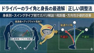 Column ドライバーのライ角は身長で決めるな!正しい選び方 ドライバーのライ角と身長の関係だけでクラブを選んでいませんか?スライスやフックが治らない原因はそこにあるかも。この記事では身長より重要な「WTF」測定や診断法、メーカー別調整機能を徹底解説。最適なドライバーのライ角と身長の答えが見つかります。 2026.01.12 Column